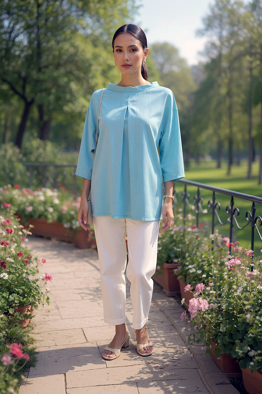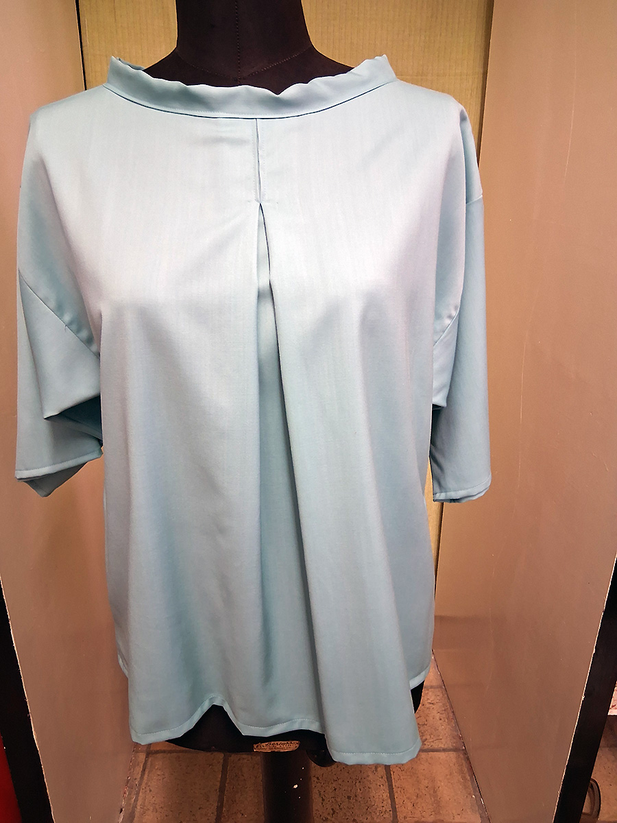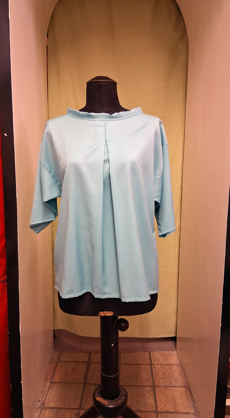Camicetta in tessuto fresco lana, con possibilità di indossarla sia sul davanti che sul retro, collo a barchetta, taglia M, fatta a mano e pezzo unico.
